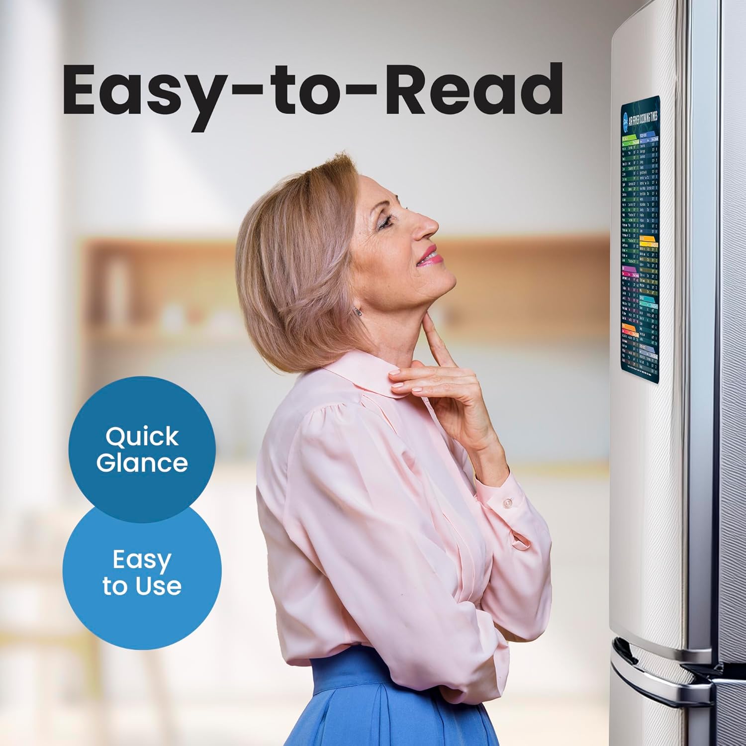 These strong magnetic sheets stick right to your fridge, providing instant access to cooking times and temperatures. No more flipping through pages or searching online. Just glance at your cheat sheet and cook with confidence, saving time and ensuring delicious results.